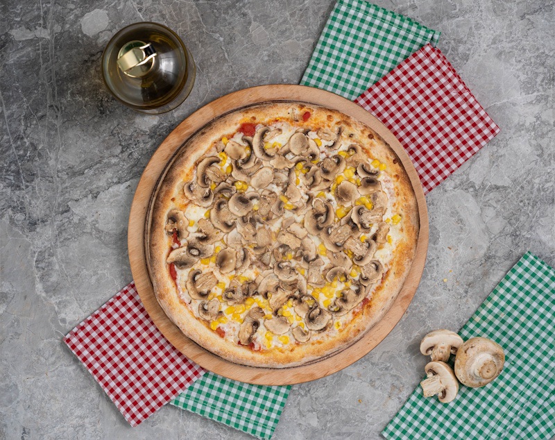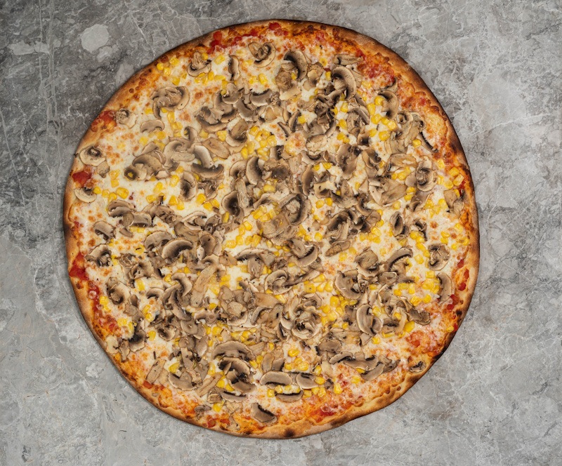 San Marzano Domates Sosu, Mozzarella Peyniri, mantar, mısır