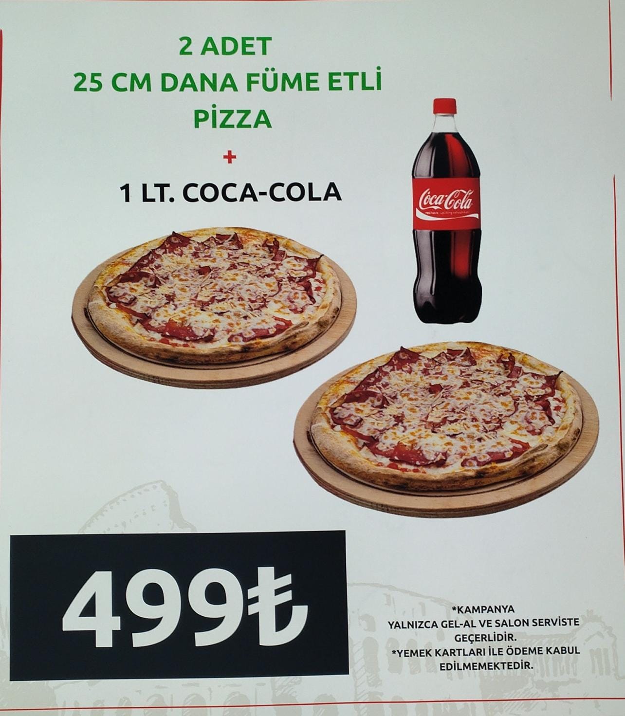 San Marzano Domates Sosu, Mozzarella Peyniri, Dana Salam, Dana Sucuk, Dana Sosis, Kırmızı Biber, Mısır, Mantar...